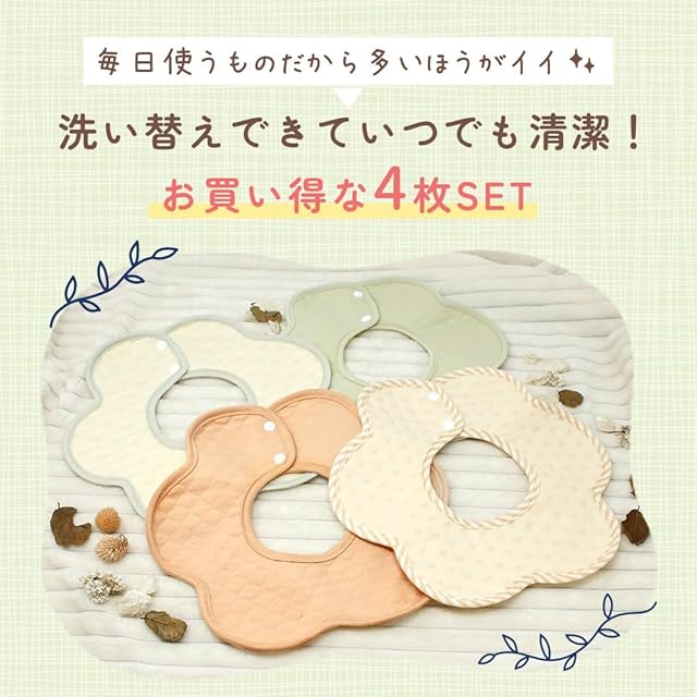 【商品紹介】洗い替えにも便利なスタイの4枚セット!360°しっかりとガードするから食べこぼしが気になるお子様にピッタリです。