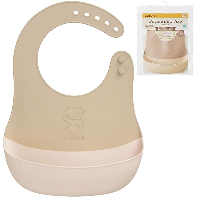 EDISONmama(エジソンママ) ベビー エプロン スタイ ごはんを楽しむエプロン モカ/食洗器対応 首が苦しくない 食べこぼしをキャッチ ワンサイズ