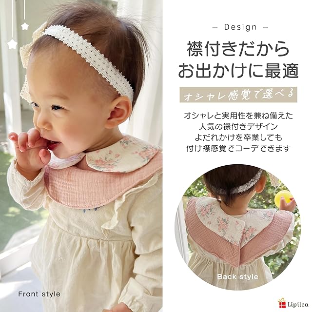 ⭐【襟付きのオシャレなデザイン】襟付きデザインだから、お出かけスタイルにもぴったり。まるでお洋服のように楽しめて、オシャレ感覚で選べるからコーディネートの幅がぐんと広がります。よだれかけとしてはもちろん、卒業後も付け襟として長く愛用できる、オシャレと実用性を兼ね備えた人気のアイテムです。