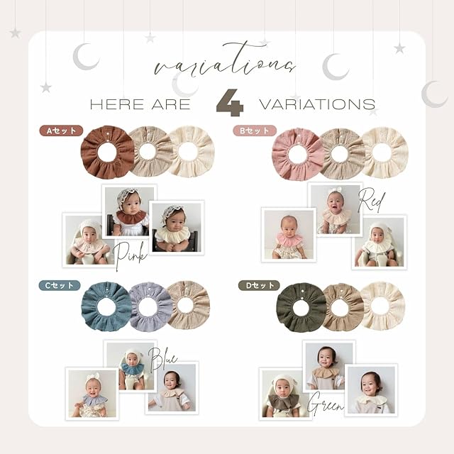 3枚セット毎日必要なスタイだから、交換にも洗い替えにも安心な3枚セットにしました。お出かけ途中で交換しても同じ形のスタイだからその日のコーディネートの邪魔をしません。