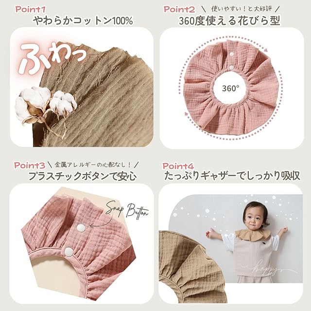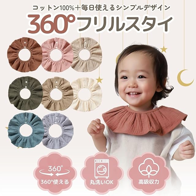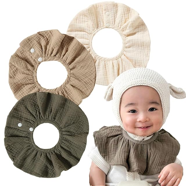 [Ella.] フリルスタイ 3枚セット 360° よだれかけ シンプル おしゃれ 3枚セット ベビー 赤ちゃん コットン 綿 花形 くるくる 染みない スナップボタン スタイ かわいい 綿100% ベビービブ 男の子 女の子 360 セット