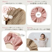 コットン100%ふんわり柔らかく肌触りが良いガーゼコットンを使用。刺激に弱い赤ちゃんの敏感なお肌にも安心です。吸水性も抜群なので赤ちゃんのよだれをしっかりキャッチします。