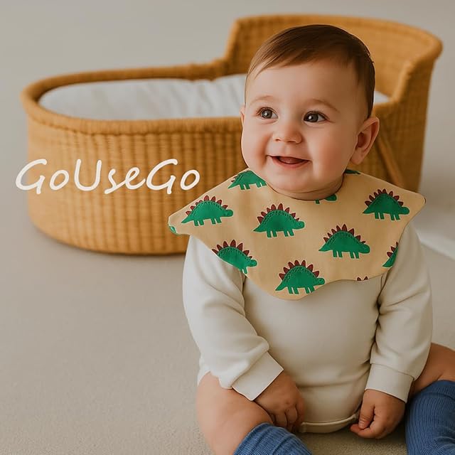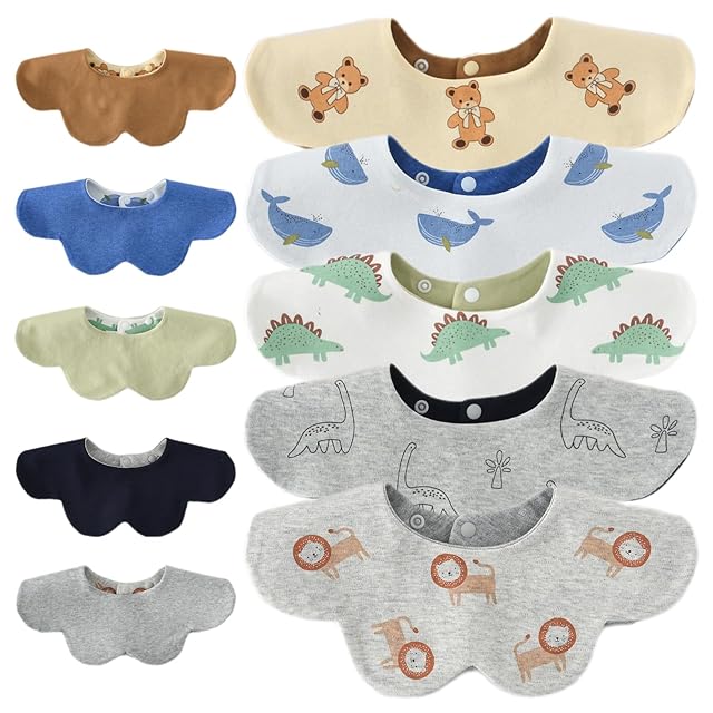[GoUseGo] ベビー スタイ 360度 5枚セット リバーシブルスタイ 100%綿スムース 三層構造 赤ちゃん 大きめ 厚手 花びらスタイ 両面使える 無地 男の子 女の子 よだれかけ コットン 新生児 ベビーギフト 出産祝い