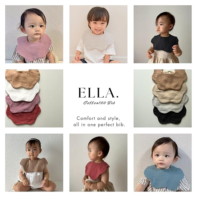 商品名:[Ella.] 6層ガーゼスタイ 4枚セット コットン100% 無地 シンプル おしゃれ 6層ガーゼスタイ ベビー よだれかけ 赤ちゃん 保育園 高吸収力 肌に優しい (Aセット)