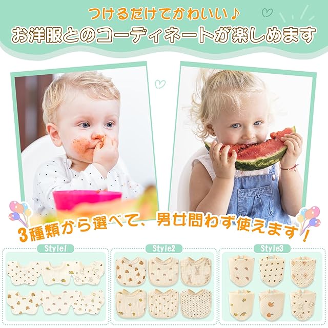 【洗い替えに便利】毎日付け替えれる6枚セット、入園準備や育児生活の必需品です。おしゃれで実用的なデザインのスタイで、おでかけ用にぴったり。よだれの量が多い赤ちゃんにはもちろん、ミルクや食事の食べこぼしガードなど、様々なシーンに対応!