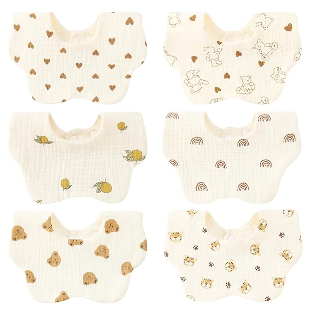 [Comfort U] よだれかけ スタイ ベビー ビブ 男の子 女の子 花びら型 6枚セット 綿100% 6重ガーゼ 吸水 柔らかい スナップボタン サイズ調整可能 赤ちゃん 可愛い エプロン お食事スタイ おしゃれ おでかけ 出産準備 ギフト 保育園 入学準備