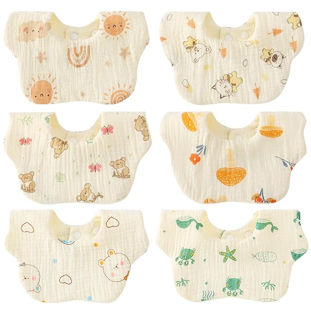 [Comfort U] よだれかけ スタイ ベビー ビブ 男の子 女の子 花びら型 6枚セット 綿100% 6重ガーゼ 吸水 柔らかい スナップボタン サイズ調整可能 赤ちゃん 可愛い エプロン お食事スタイ おしゃれ おでかけ 海の生き物 海星 大自然 柄 出産準備 ギフト 保育園 入学準備