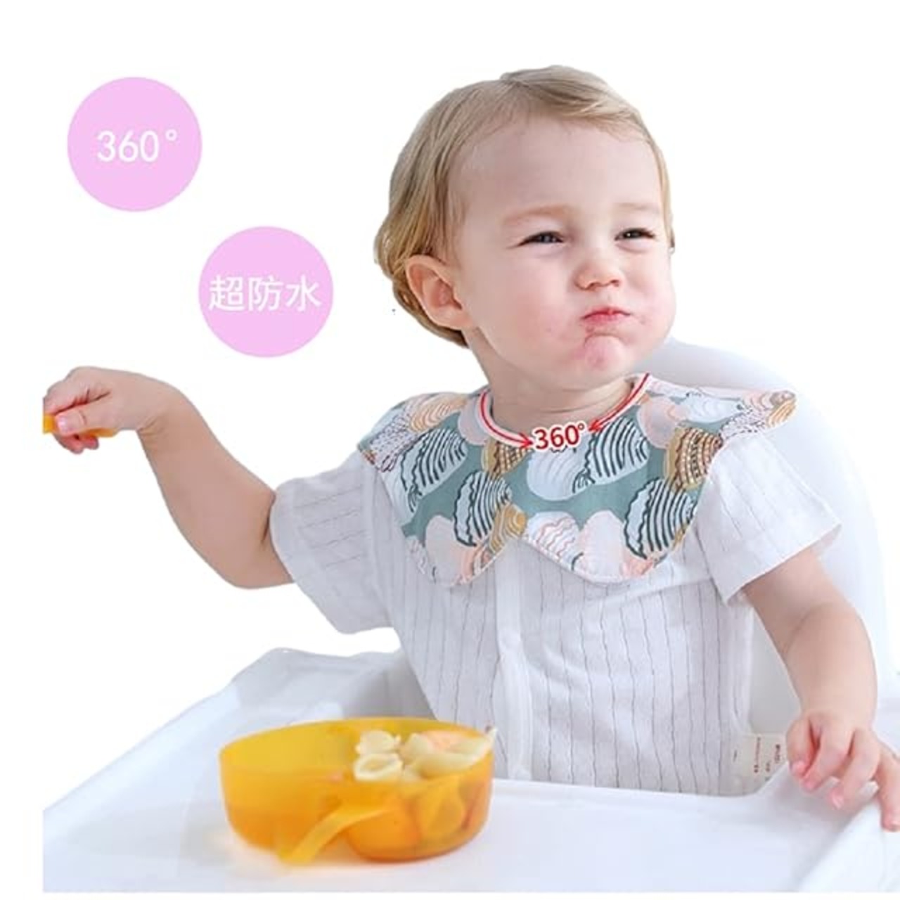 【360°スタイ 】360度回って使える。一端が濡れたら回せば引き続き使える。赤ちゃんのよだれに困っているお母さんたち、是非使ってみてください!