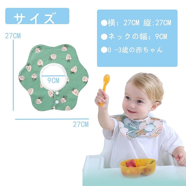 【セットの内容】6種類の花びら型のよだれかけは。サイズ:27*27cm、ネックの幅:9cm、0-3歳の赤ちゃんにぴったりのスタイです。
