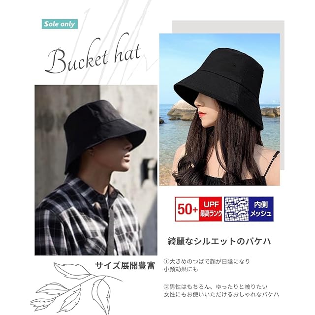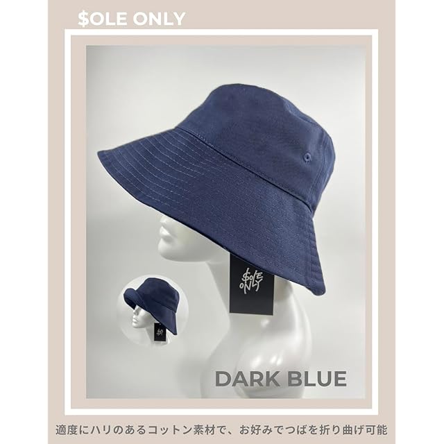 商品名:[$ole only] ソールオンリー バケットハット 大きめ 大きい M L XL 小顔効果 紫外線カット UPF50+ UVカット アウトドア サファリハット バケハ 春 夏 秋 シンプル つば広 おしゃれ メンズ レディース 男女 韓国 あご紐 綺麗 (XL(約61cm), ダークブルー)