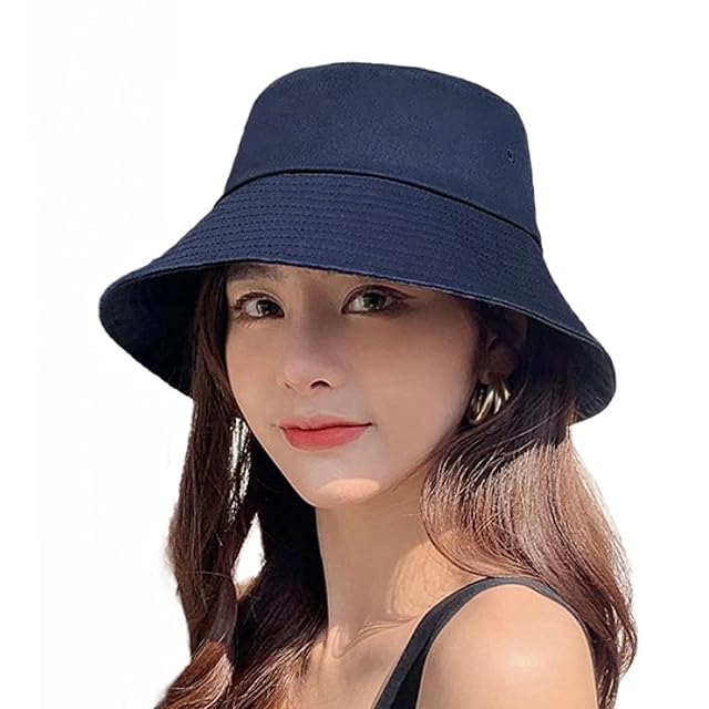 [$ole only] ソールオンリー バケットハット 大きめ 大きい M L XL 小顔効果 紫外線カット UPF50+ UVカット アウトドア サファリハット バケハ 春 夏 秋 シンプル つば広 おしゃれ メンズ レディース 男女 韓国 あご紐 綺麗 (XL(約61cm), ダークブルー)