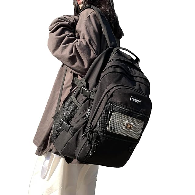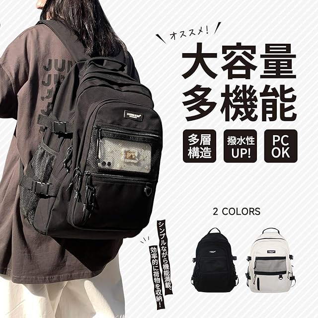 【ZESU】リュック大容量韓国リュックサック カジュアルバッグアウトドア 男女 高校生 中学生 登山 ビジネス レディース学生メンズ/修学/通勤通学 (ブラック)