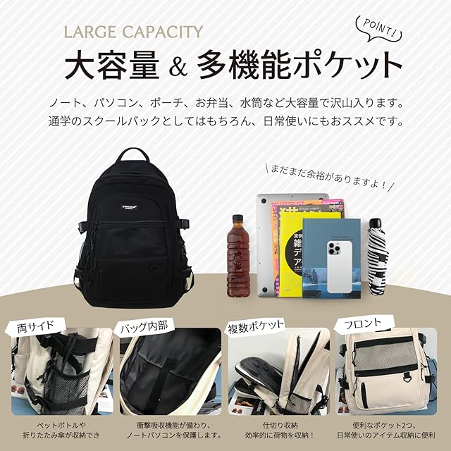 商品名:【ZESU】リュック大容量韓国リュックサック カジュアルバッグアウトドア 男女 高校生 中学生 登山 ビジネス レディース学生メンズ/修学/通勤通学 (ブラック)