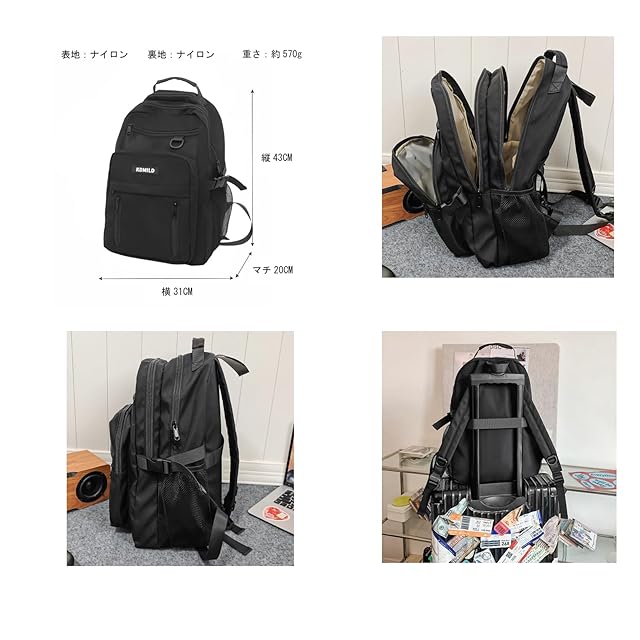 商品名:[ZESU] 韓国リュック 通学 大容量 メンズ リュックサック バックパック 中学生 女子 高校生 通勤 学生 男女 レディース カジュアル バッグ (ブラック)