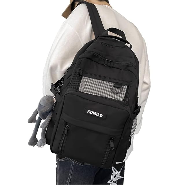 [ZESU] 韓国リュック 通学 大容量 メンズ リュックサック バックパック 中学生 女子 高校生 通勤 学生 男女 レディース カジュアル バッグ (ブラック)