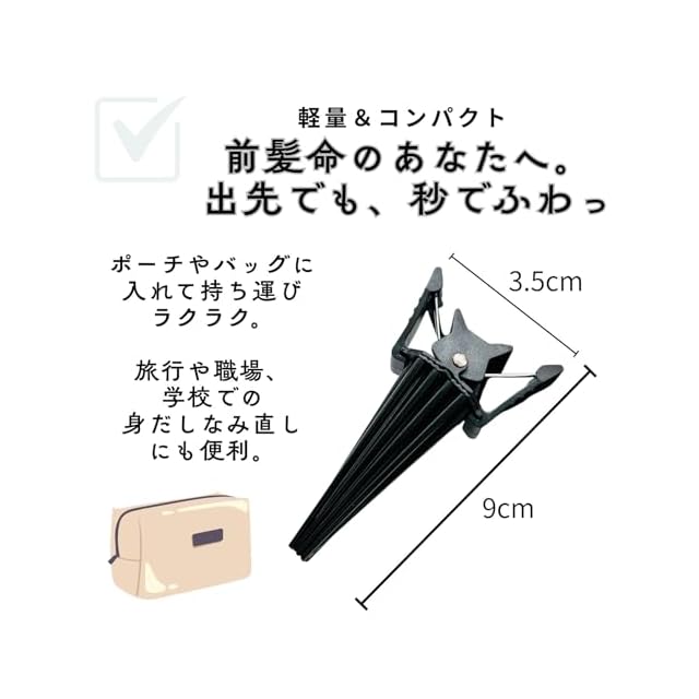【根元の立ち上がりをピンポイントで実現】自然な根元立ち上げで清潔感ある印象を作り出すこのヘアアクセサリーは、コンパクトで持ち運びにも便利で目立たないブラックのヘアピンなので外出先でも活躍します。