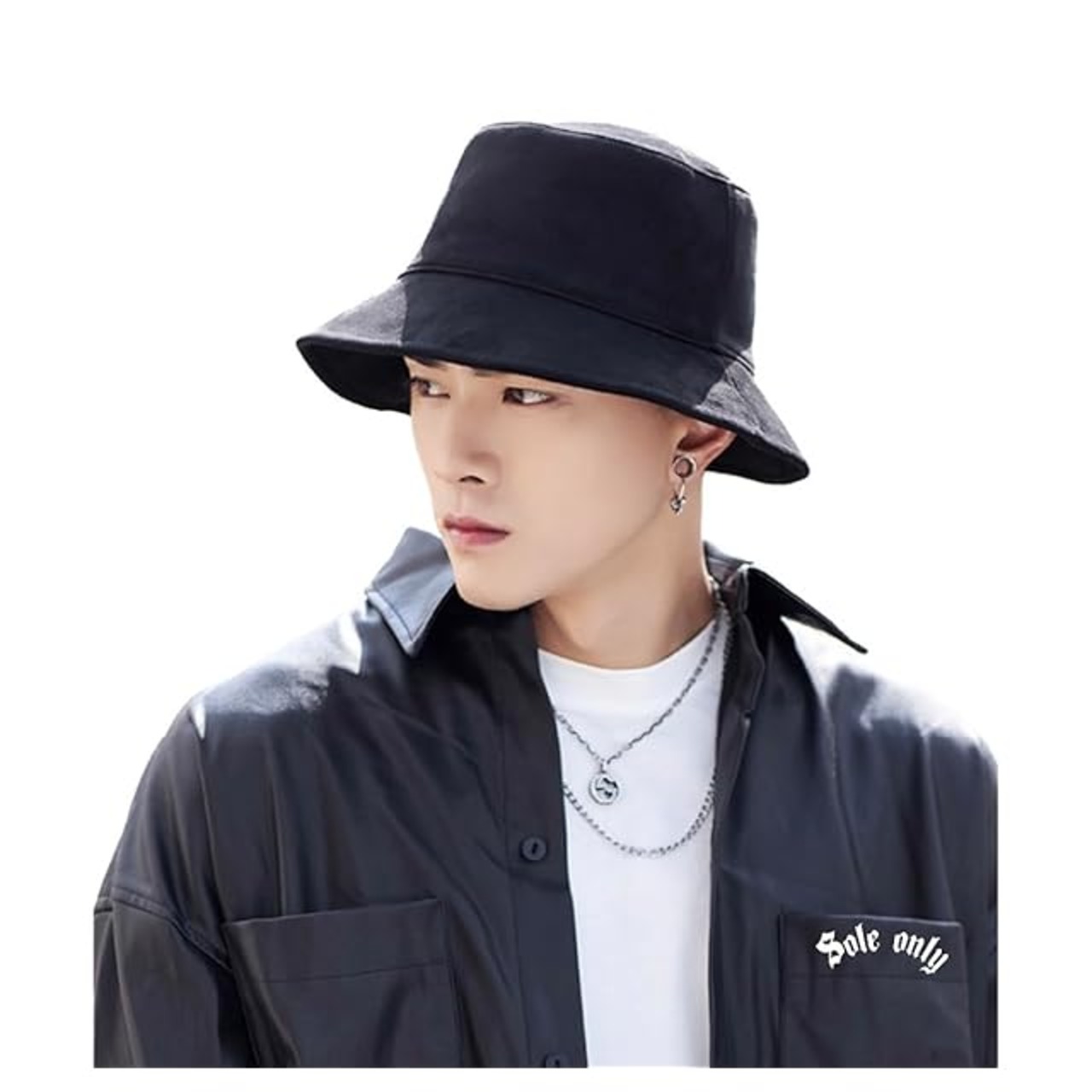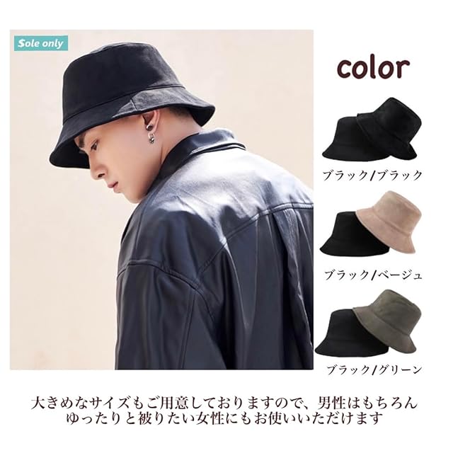 [$ole only] ソールオンリー バケットハット 大きめ 大きい M L XL スエード調 リバーシブル 小顔効果 紫外線カット アウトドア バケハ 秋 冬 シンプル おしゃれ かっこいい メンズ レディース 男女 韓国 綺麗 (XL(約61cm), ブラック/ブラック)
