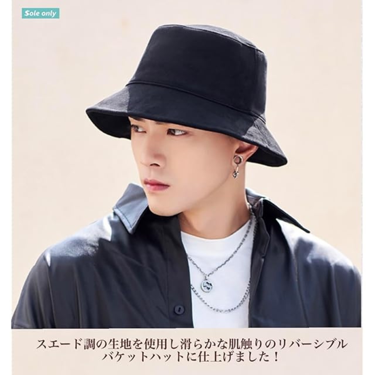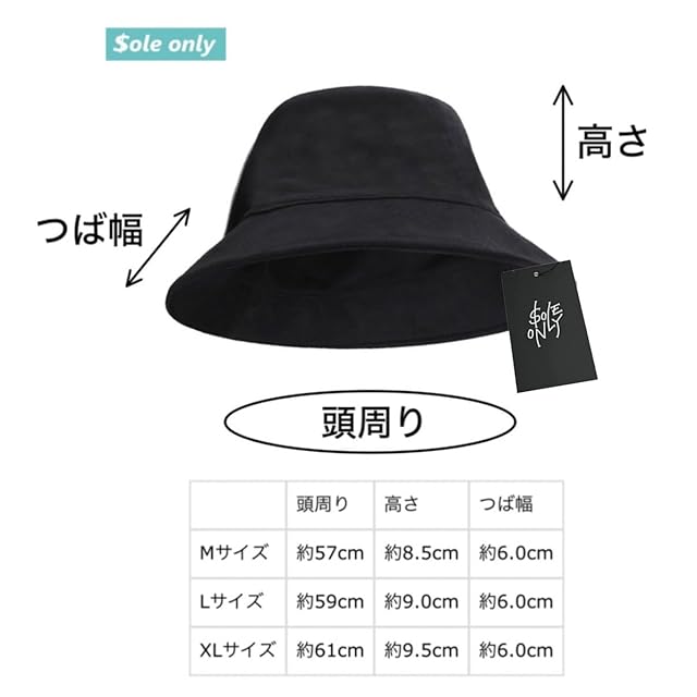 商品名:[$ole only] ソールオンリー バケットハット 大きめ 大きい M L XL スエード調 リバーシブル 小顔効果 紫外線カット アウトドア バケハ 秋 冬 シンプル おしゃれ かっこいい メンズ レディース 男女 韓国 綺麗 (XL(約61cm), ブラック/ブラック)