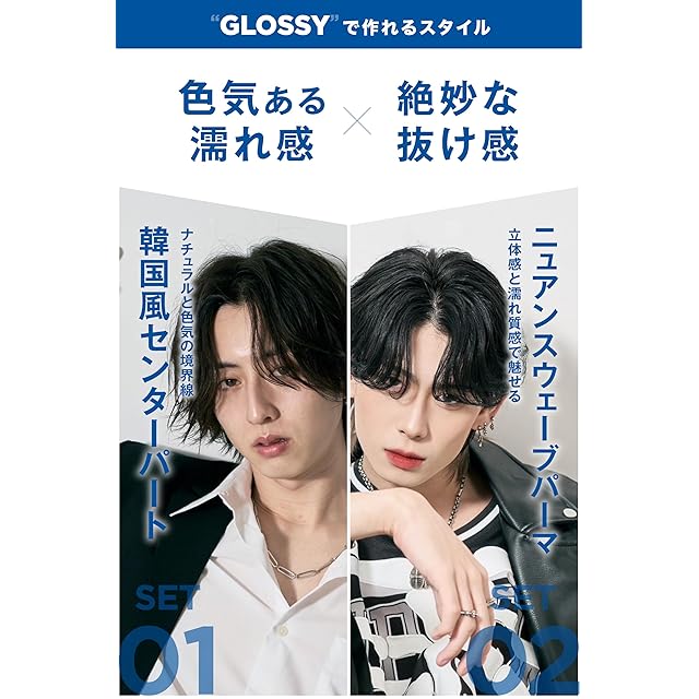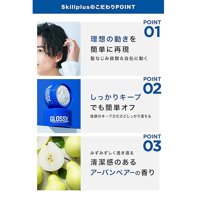 Skill plus スキルプラス グロッシー 80g ヘアワックス メンズ 毛流れ 韓国風ヘア センターパート