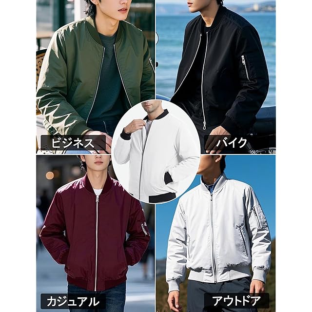 【防寒】ボンバージャケットは、優れた防風性を持ち、寒さからしっかり守ります。内側の中綿は高い保温性を提供し、冬の冷たい日でも暖かく快適に保ちます。防風・防寒性能に優れ、アウトドアや日常使いにも対応できる