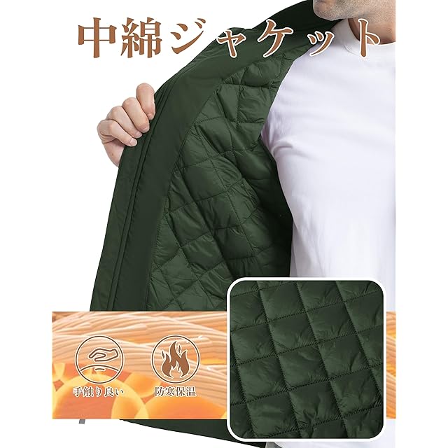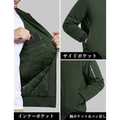 商品名:[KEFITEVD] ジャンパー メンズ 防寒 キルティングジャケット 無地 ボンバージャケット 中綿 ブルゾン ポケット付き 撥水 アウトドア ブルゾン 防風 バイク グリーン M