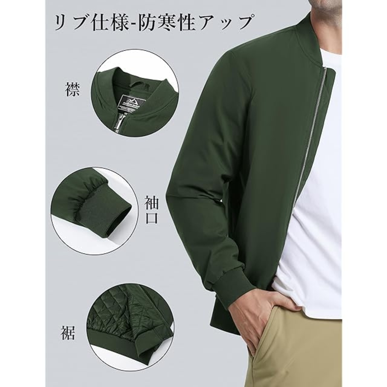 【中綿ジャケット】ボンバージャケットは、優れた防風性を持ち、寒さからしっかり守ります。内側の中綿は保温性を提供し、冬の冷たい日でも暖かく快適に保ちます。防風・防寒性能に優れ、アウトドアや日常使いにも対応できる
