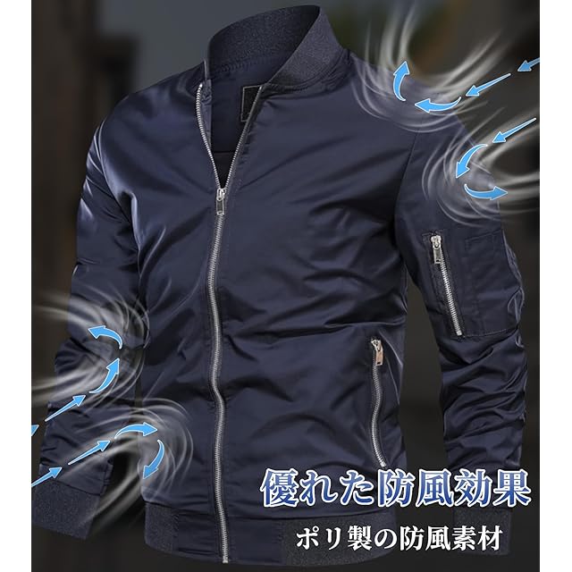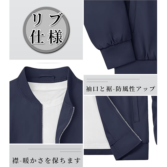 商品名:[KEFITEVD] ブルゾン メンズ 春秋 ャンパー 薄手 バイクウエア ジャケット 撥水 ジャンパー 防風 ライトジャケット ゴルフ スタジャン 作業着 アウター ネイビー 2XL