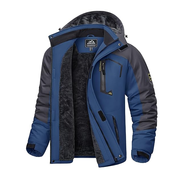 [KEFITEVD] 防寒ジャケット メンズ 裏起毛 ウィンドブレーカー 暖かい アウトドア 防撥水 バイクジャケット スキーウエア キャンプ 登山着 紺 ネイビー JP L