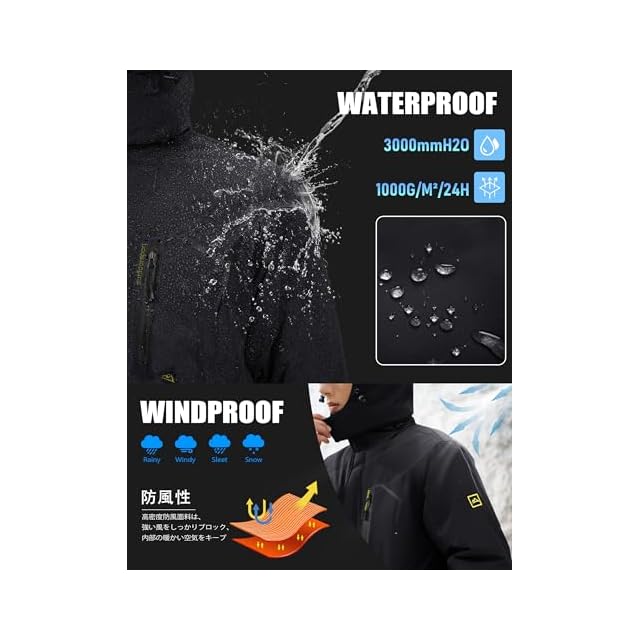 商品名:[KEFITEVD] ジャケット メンズ 冬 バイクジャケット 防寒着 防水 登山服 釣り 防寒着 作業着 防風 アウター 裏ボア マウンテンジャケット 冬服 黒 ブラック JP L
