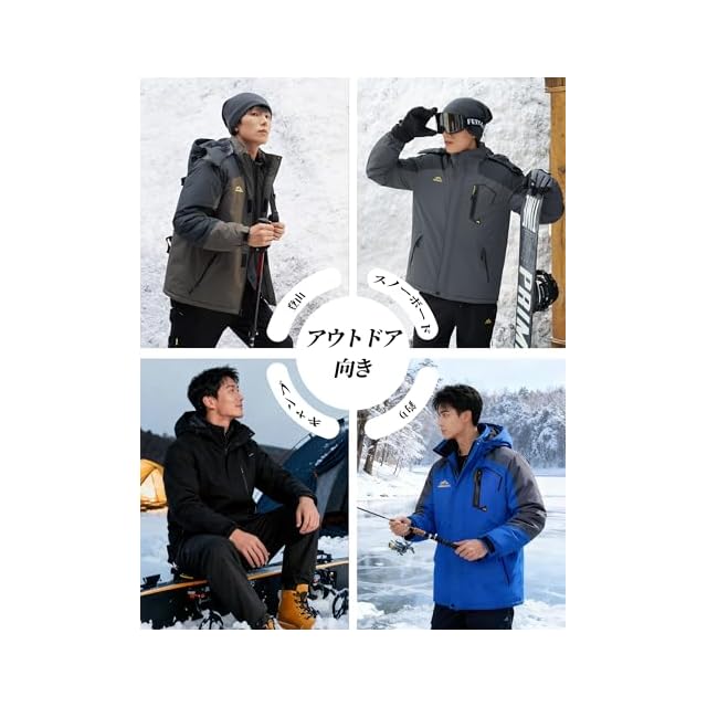 表地は撥水加工を施したマウンテンパーカーは裏ボア付きなので、着た瞬間から温もりを与えてくれます、防寒性と保温性に抜群、それだけでなく、防風性、防汚性、ある程度の防水性も備えており、冬のキャンプ、外出、作業、スキーなどに適しています。冬の必需品の防寒アウターです。