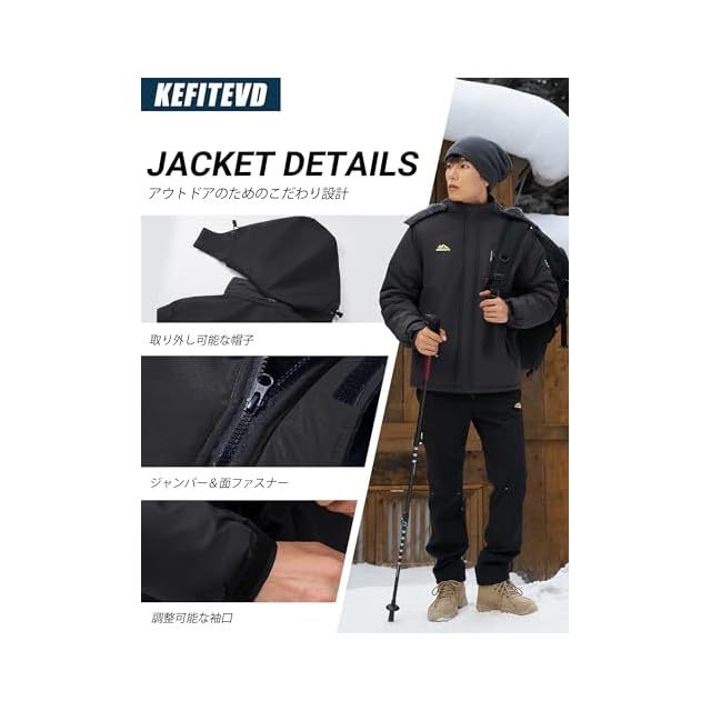 [KEFITEVD] ジャケット メンズ 冬 バイクジャケット 防寒着 防水 登山服 釣り 防寒着 作業着 防風 アウター 裏ボア マウンテンジャケット 冬服 黒 ブラック JP L