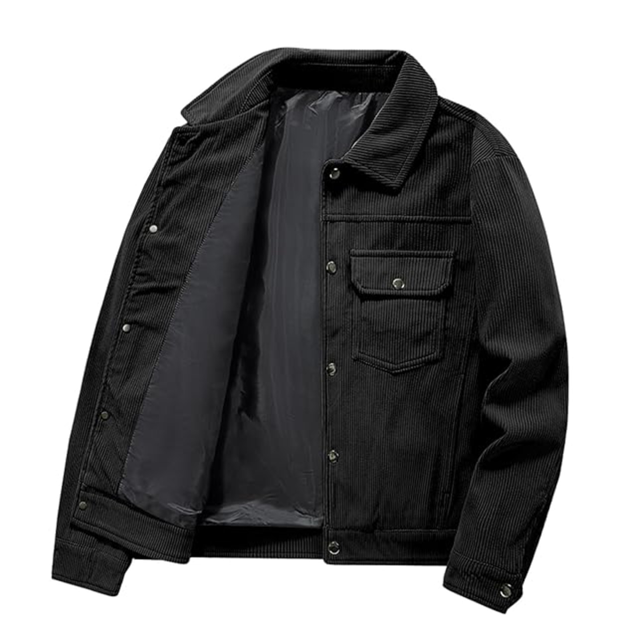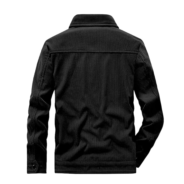 [Manatsulife] ジャケット コーデュロイ メンズ 折り襟 防風 保温 撥水 暖かい 羽織り 作業服 アウトドア 釣り 山登り 秋服 冬 カジュアル おしゃれ WT2266 (L, ブラック)