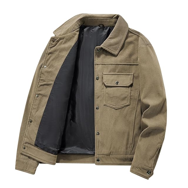 [Manatsulife] ジャケット コーデュロイ メンズ 折り襟 防風 保温 撥水 暖かい 羽織り 作業服 アウトドア 釣り 山登り 秋服 冬 カジュアル おしゃれ WT2266 (2XL, カーキ)