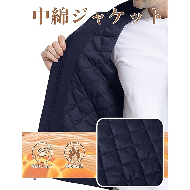 商品名:[KEFITEVD] ボンバージャケット メンズ 厚手 防寒着 カジュアル 中綿ジャケット 無地 ゴルフウェア アウター 登山 ハイキング ジャンパー 撥水 ミリタリー ネイビー M