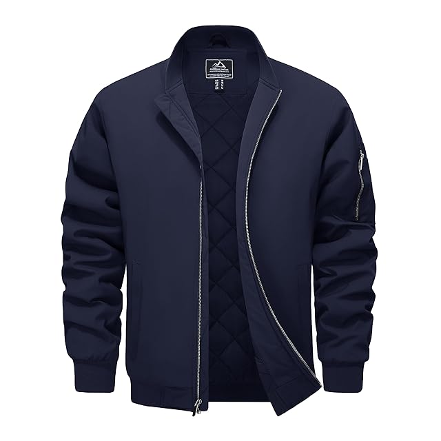[KEFITEVD] ボンバージャケット メンズ 厚手 防寒着 カジュアル 中綿ジャケット 無地 ゴルフウェア アウター 登山 ハイキング ジャンパー 撥水 ミリタリー ネイビー L