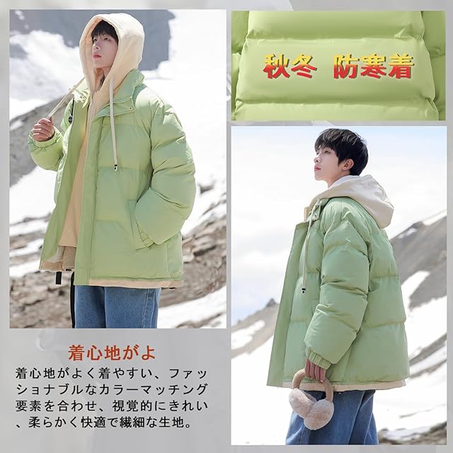 冬服 メンズ 防寒 コート 中綿 フード付き ジッパー ジャケット 大きいサイズ ゆったり 厚手 防風 防寒 ダウンジャケット シンプルデザイン 暖かい 無地 男女兼用 アウター