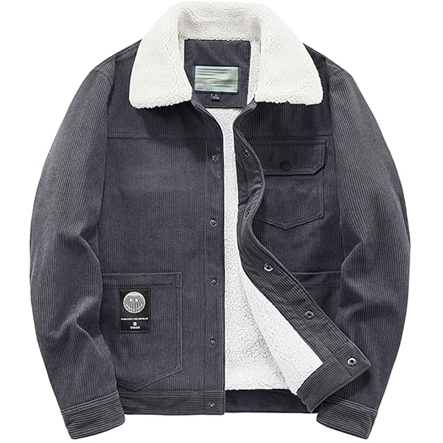 [Manatsulife] メンズ ジャケット コーデュロイ コート ブルゾン フライトジャケット ボアジャケット アウター 裏起毛 冬服 秋冬 厚手 暖かい 防風 防寒 ボア 防寒 保温 冬 カジュアル おしゃれ WT558,. (グレー, L)