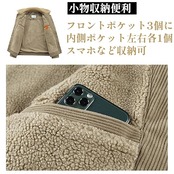 【防寒・防風】表面と裏地はコーデュロイとボアで作られており、優れた防風性、保温性、手触りを備えています。寒さに強く、防風保温に優れ、暖かく着られます。裏起毛で暖かく柔らかい肌触りが特徴のあるジャケットです。