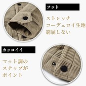 【防寒・防風】表面と裏地はコーデュロイとボアで作られており、優れた防風性、保温性、手触りを備えています。寒さに強く、防風保温に優れ、暖かく着られます。裏起毛で暖かく柔らかい肌触りが特徴のあるジャケットです。