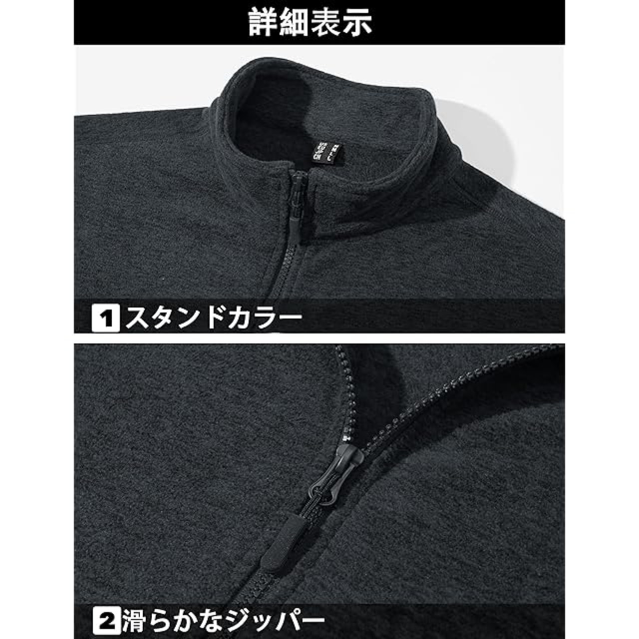 【フルジップ&スタンドカラー】フルジップは着脱が簡単で、スタンドカラーは冷たい風から守る追加のカバーを提供します。機能性と暖かさを両立させ、秋冬に適用しています