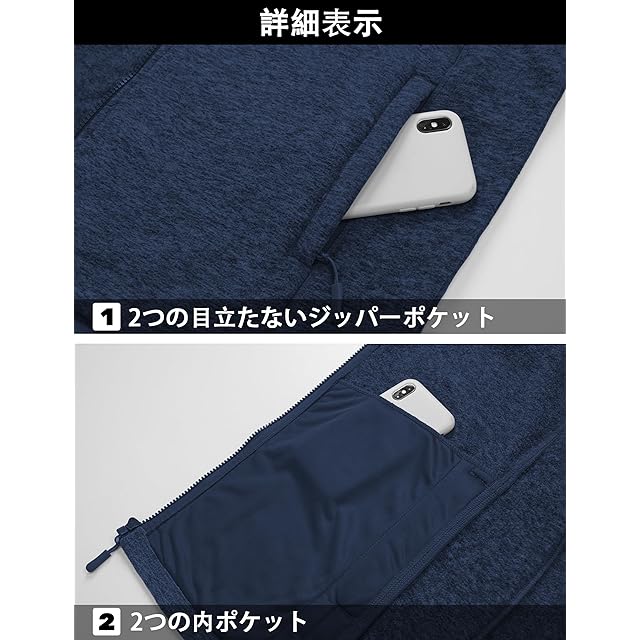 【実用的なマルチポケットデザイン】2つのセキュアなジッパー付きハンドポケットと2つの内ポケットを備え、必需品を収納するのに十分なスペースを提供します。各ポケットは深さを考慮して設計されており、スマートフォンや鍵、小物を安全に収納し、外出時にも手軽に取り出しできます