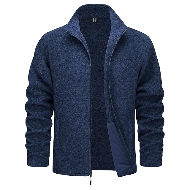 [TACVASEN] ジャンバーメンズ フリース アウトドア カジュアル 秋冬 バイクジャケット ストレッチ 無地 立ち襟 アウター 春服 ダークブルー 3XL