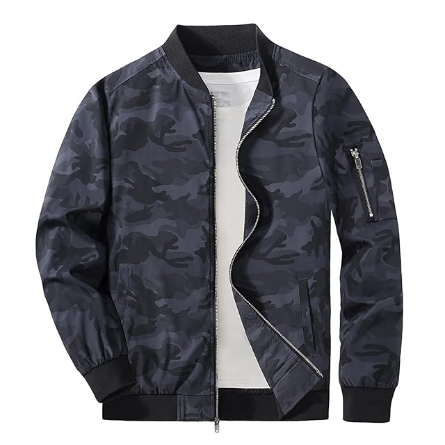 [KEFITEVD] ジャケット メンズ 迷彩 薄手 ジャンパー 作業着 ウィンドブレーカー アウトドア アウター 登山 ブルゾン 春秋 紳士 カジュアル カラーブラック 2XL