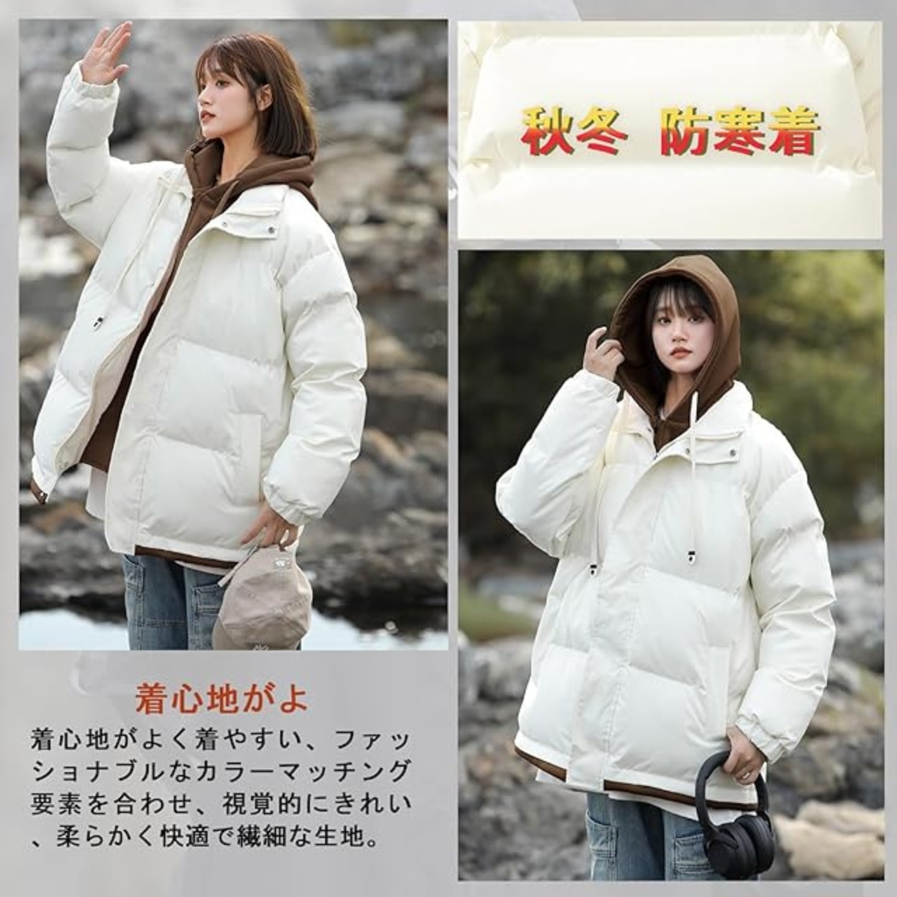 立体感としっかりとしたボリューム感を持たせつつもパターンを何度も見直し、実現した綺麗なシルエットと着心地の良さ、フード付き仕様なので首周りにもボリュームがあります。シルエットは肩回りにやや緩さを出しながらも、シャープで綺麗めな細みのフォルムに仕上げ、スタイリッシュな着こなしをアシストしてくれます。