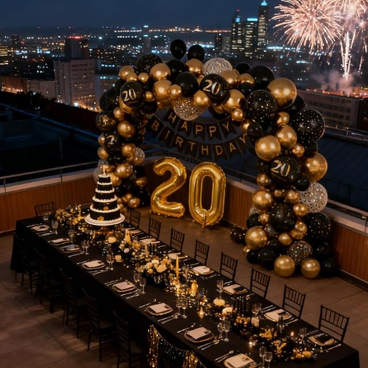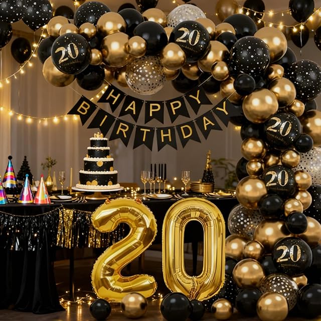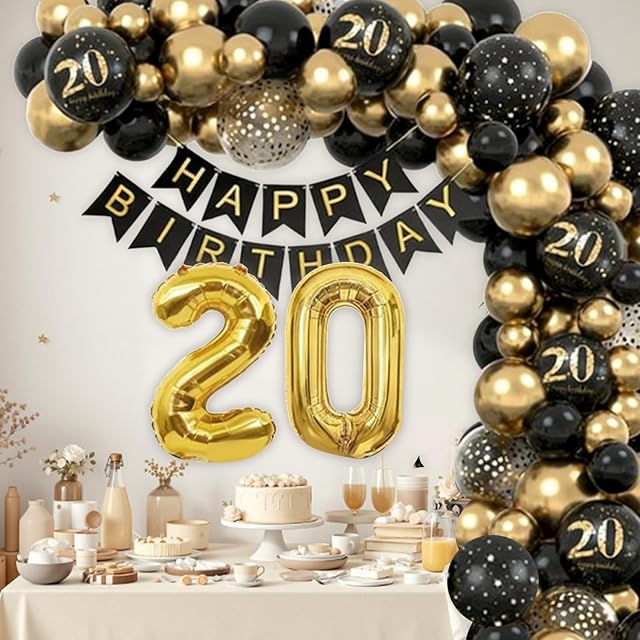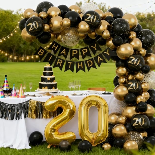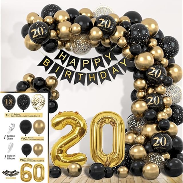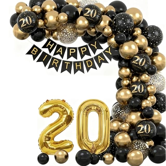 DIFEIUKI 20歳 誕生日バルーン 風船 飾り付け セット HAPPY BIRTHDAYガーランド 紙吹雪風船 数字 バルーン ブラック ゴールド バースデー 飾り 記念日 お祝い パーティー 装飾 男の子 女の子 サプライズ