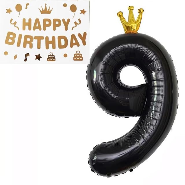 Vthoviwa 100CM バルーンアルミ9 ヘリウムクラウン風船数字バルーン9ブラック 0123456789 誕生日 カーニバル 飾り付け記念日パーティー装飾ブラック9 男女兼用 大きい しじヘリウム