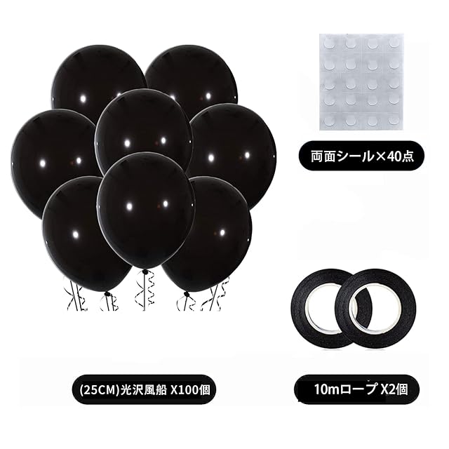 【商品セット内容】①風船 ×100個(約25cm ) ②10mリボン ×2個(約20m ) ③ 壁貼り両面シール ×40粒。