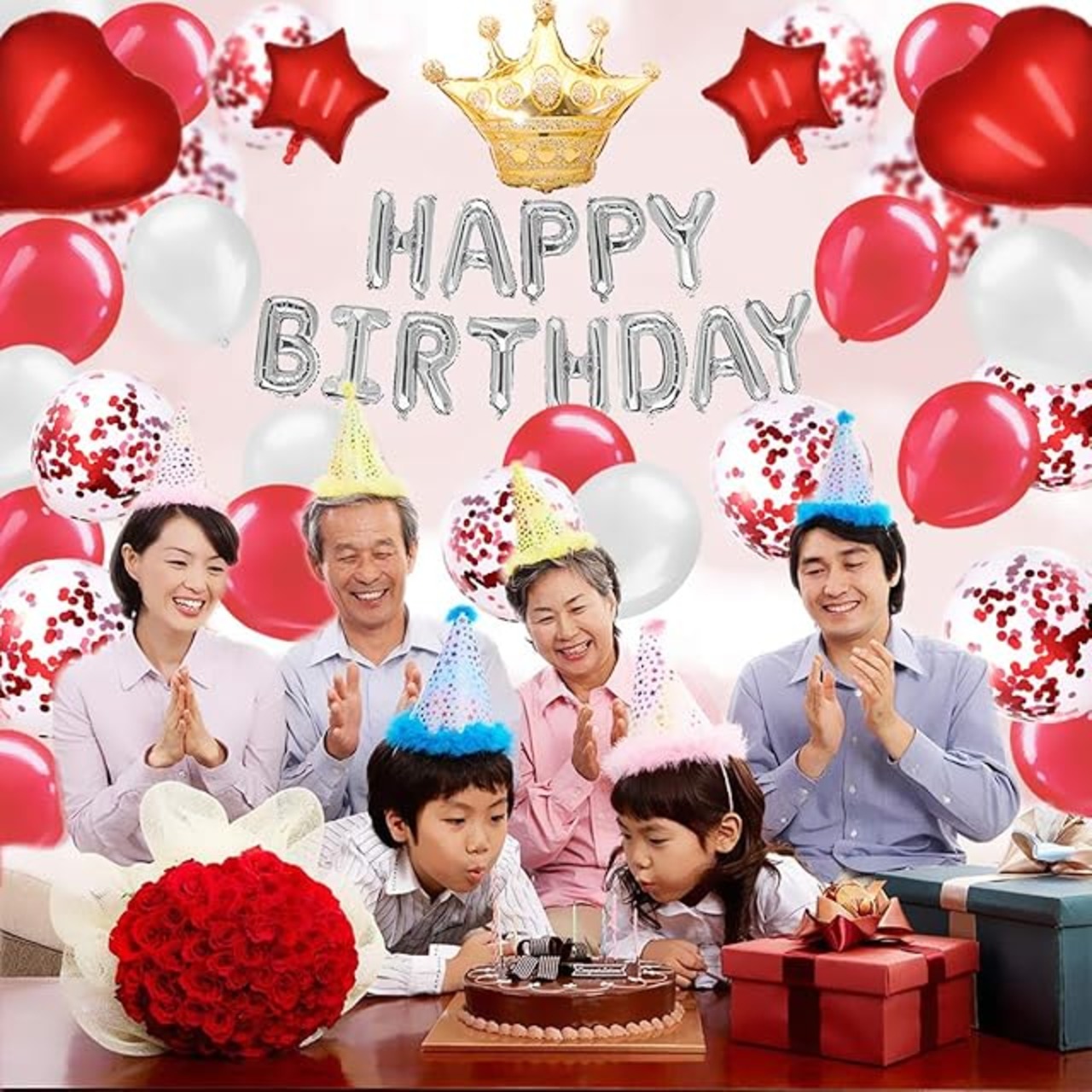 ♥♥♥各場面に大活躍♥ お誕生日お祝いのために用意するのはもちろん、忘年会、クリスマスイブ、結婚式、ウェディング、二次会いろんな記念日パーティーにも大活躍しています。お大事な日に、もっと素晴らしい記念写真を撮るために、一緒に飾り付けましょう。