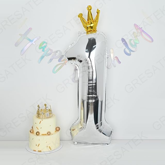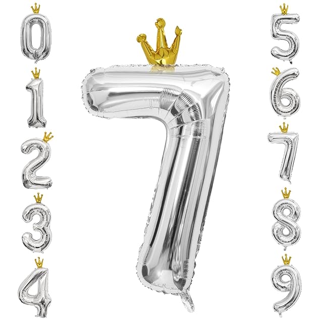 GRESATEK バルーン 数字7 風船 誕生日 40インチ 大きい ナンバー バースデーバルーン 王冠付き クラウン 飾り付け 結婚式 パーティー 記念日 ウェディング シルバー