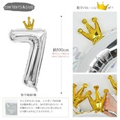 商品名:GRESATEK バルーン 数字7 風船 誕生日 40インチ 大きい ナンバー バースデーバルーン 王冠付き クラウン 飾り付け 結婚式 パーティー 記念日 ウェディング シルバー